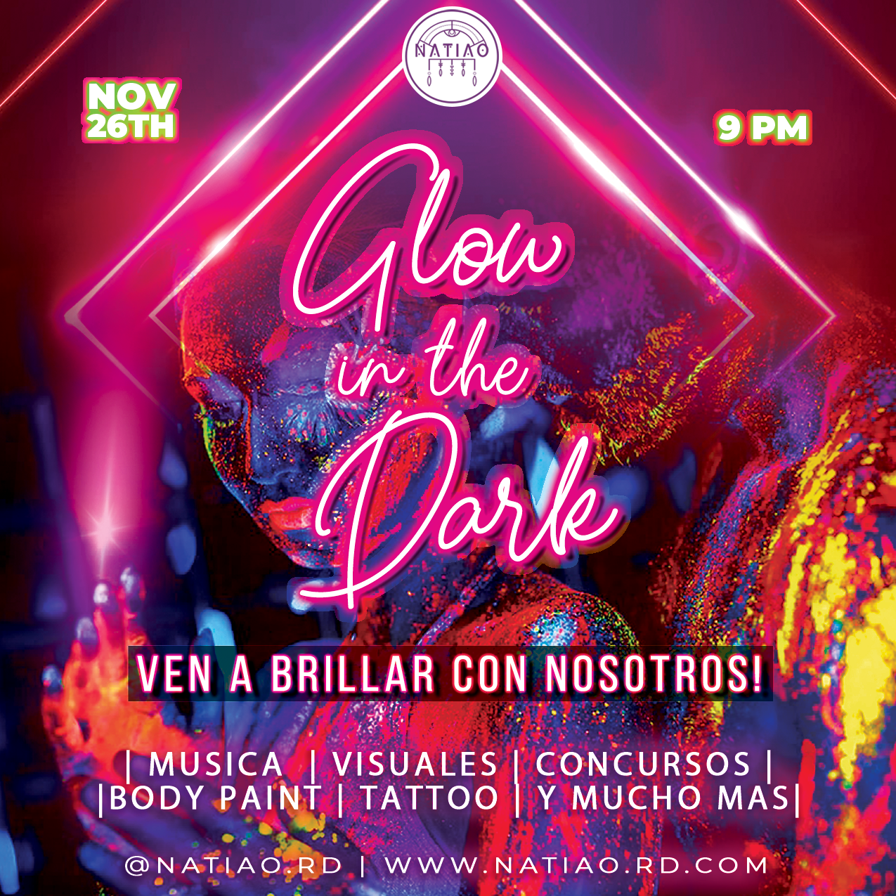 The design approach focused on creating artwork that stood out across both digital and physical media. We used bright neon colors combined with dark backgrounds to replicate the “Glow in the Dark” effect. The graphics featured futuristic typography and light-based visual elements to emphasize the theme. Digital designs included subtle animations that mimicked flashes and glows.