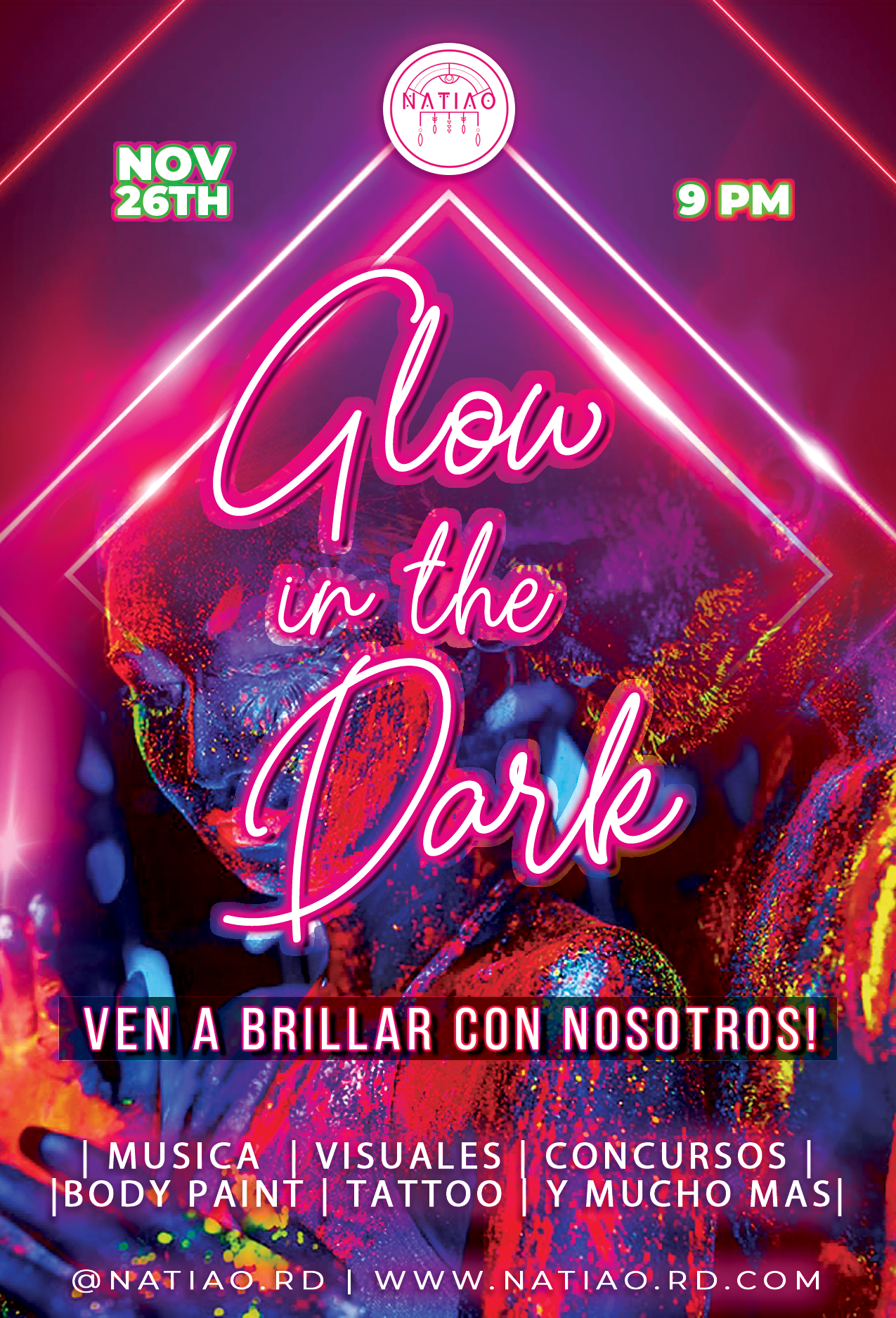 The design approach focused on creating artwork that stood out across both digital and physical media. We used bright neon colors combined with dark backgrounds to replicate the “Glow in the Dark” effect. The graphics featured futuristic typography and light-based visual elements to emphasize the theme. Digital designs included subtle animations that mimicked flashes and glows.